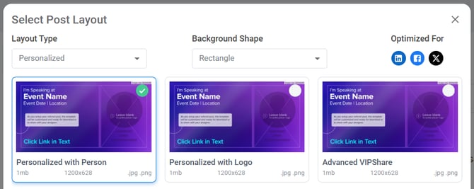 Advanced VIPShare is available for rectangle layouts and allows you to customize additional fields and control where they appear within the graphic. It’s best suited for advanced branding or highly customized layouts.